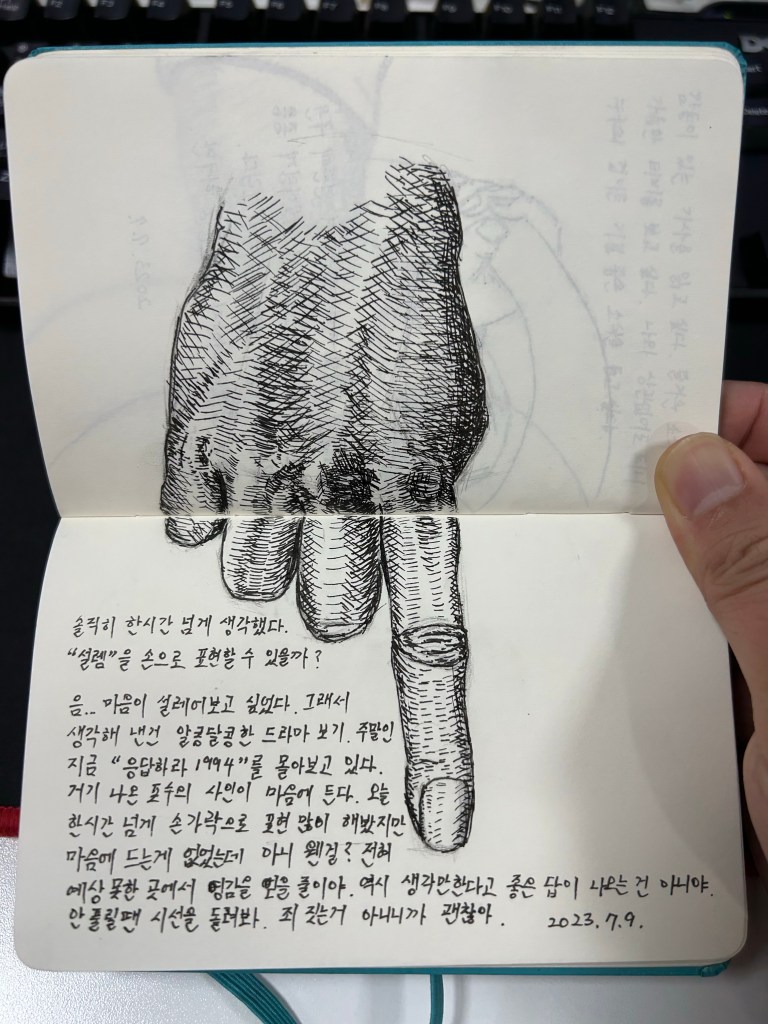 솔직히 한시간 넘게 생각했다. “설렘”을 손가락으로 표현할 수 있을까?